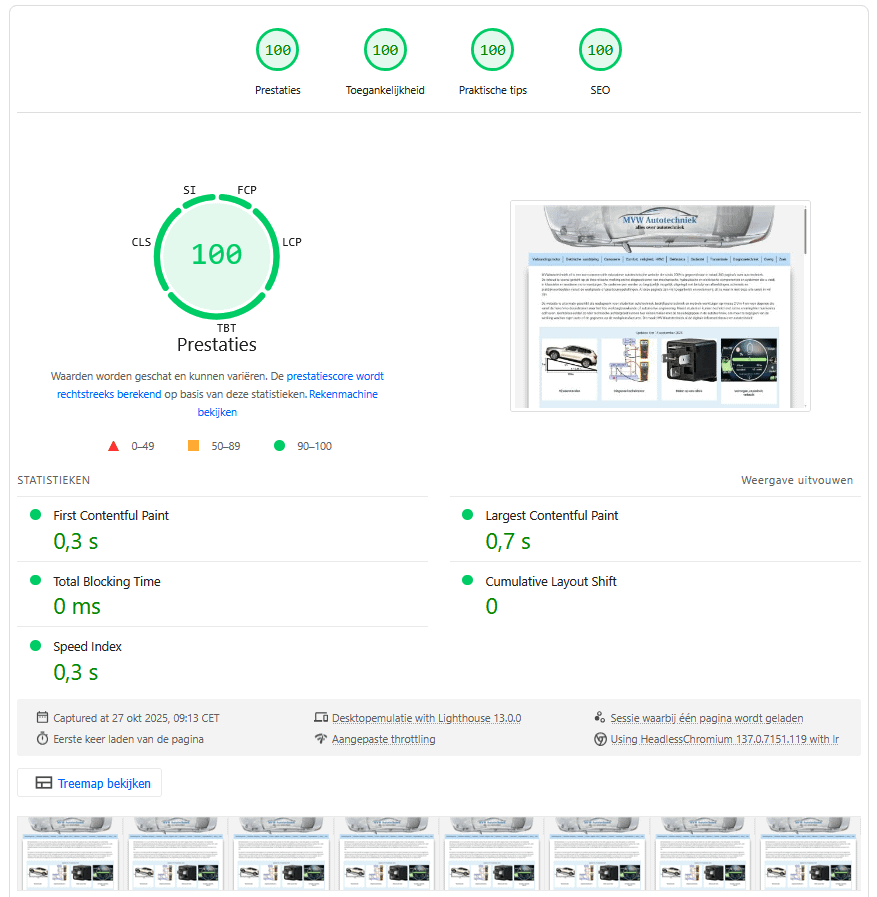 De website is geoptimaliseerd door middel van het lokaal laden van lettertypen en deze preloaden, afbeeldingen in moderne bestandsformaten geoptimaliseerd, cache-instellingen geoptimaliseerd, onnodige functies van plugins uitgeschakeld om deze geen resources te laten verbruiken, etc.
