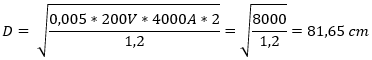 4. Bereken de werkafstand D. De waarde 1,2 cal/cm² wordt vaak gebruikt als grens waarbij onbeschermde huid een tweedegraads brandwond kan oplopen. Door deze grenswaarde voor de incidentenergie (IE) in de noemer van de formule in te vullen, kan de afstand worden bepaald waarbij de energie niet hoger wordt dan deze veilige waarde.