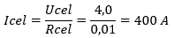 2. Bereken de kortsluitstroom per cel (Icel). De kortsluitstroom per cel is de maximale stroom die één enkele batterijcel kan leveren wanneer de plus- en minpool direct met elkaar worden verbonden: